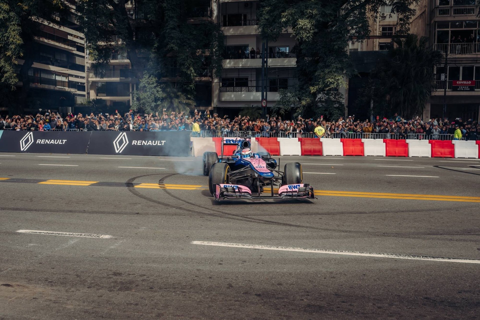 Colapinto prowadził Lotusa E20 z 2012 roku, wykonując kilka przejazdów, które obejmowały wypalenia, pączki i szybkie przejazdy. Podczas pokazu machał również do fanów. Był to wyjątkowy moment dla lokalnego kierowcy, który stał się pierwszym Argentyńczykiem prowadzącym bolid Formuły 1 na ulicach Buenos Aires. Program obejmował również rozrywkę na żywo i występ sceniczny Colapinto.
